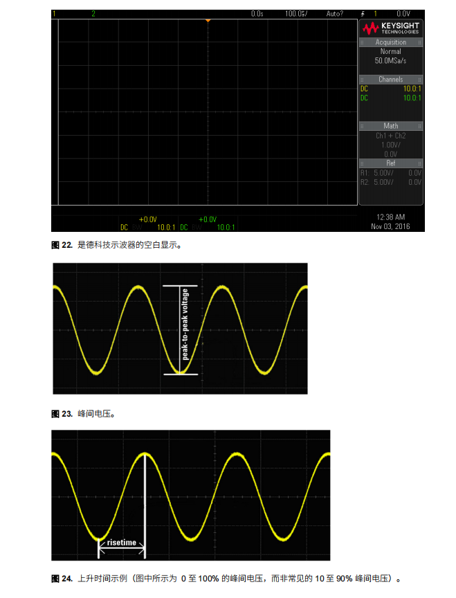 上升時間:該測量用于計算信號從低壓到達高壓所需的時間。 通常通過計算從 10% 的峰間電壓上升到 90% 的峰間電壓所需 的時間來計算。