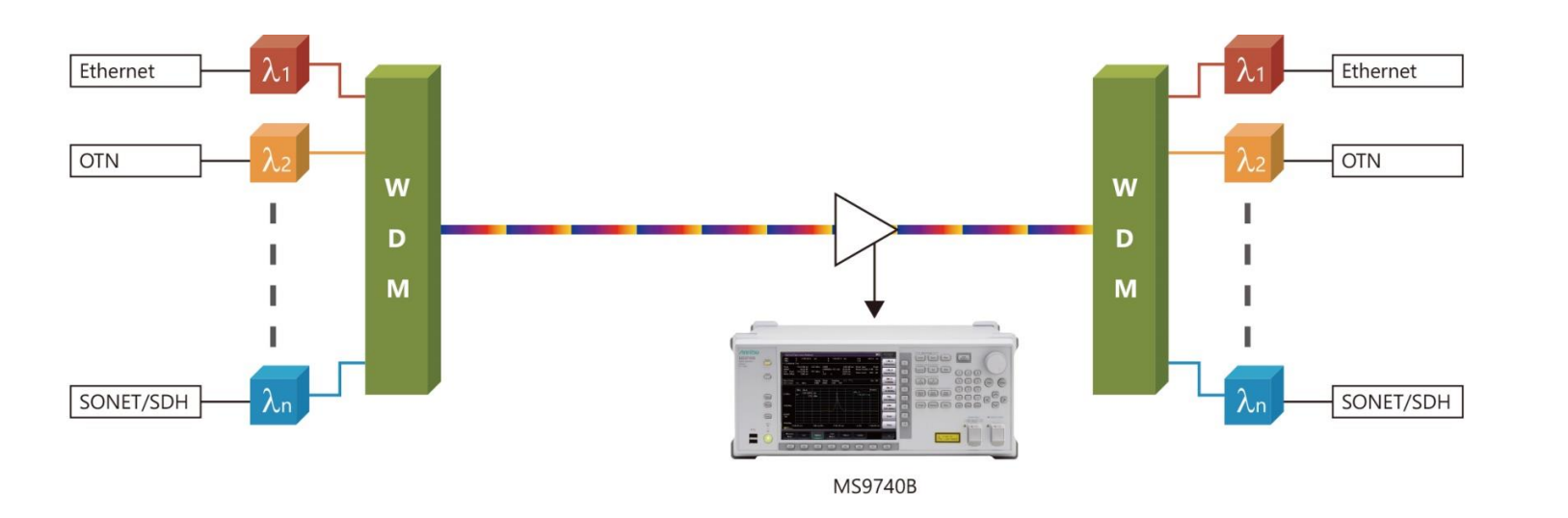 1. 將 TLS 的輸出端口連接到 PC 的輸入端口,將 PC 的輸出端口連接到 VA 的輸入端口,將 VA 的輸出端口連接到待測(cè)光纖的輸入端口,將待測(cè)光纖的輸出端口連接到 PA 的輸入端口,將 PA 的輸出端口連接到 MS9740B 的輸入端口。