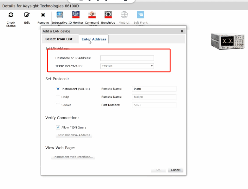 ? Keysight IO Libraries Suite軟件:這是一款通用的儀器驅動和通信軟件,可以幫助您識別和配置86100D等Keysight儀器。該軟件可以為86100D分配一個VISA地址,以便通過USB或LAN進行通信。