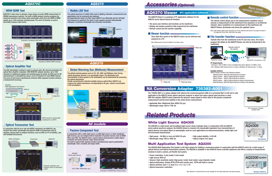 AQ6370C可以用于光有源器件、光無源器件、光傳輸設(shè)備等的測試和研發(fā),AQ6370C是一款光譜分析儀,由橫河計量儀表公司生產(chǎn),于2014年停產(chǎn):