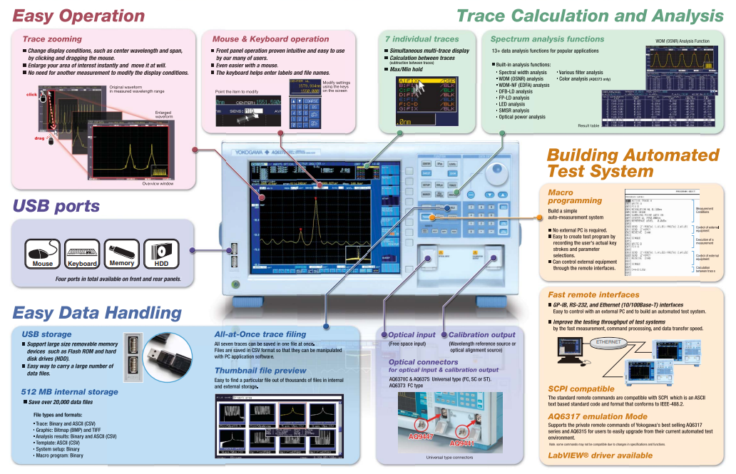 ? AQ6370D增加了數(shù)據(jù)日志、門控采樣、分辨率校正和高級標(biāo)記等功能,可以記錄和分析更多的光譜數(shù)據(jù)。