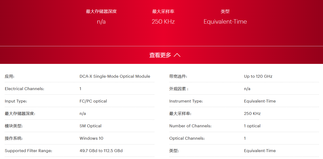 ? 適用于分析 112 GBd(224 Gbps)光信號或需要 > 65 GHz(-3 dBo)超大帶寬光接收機的應用