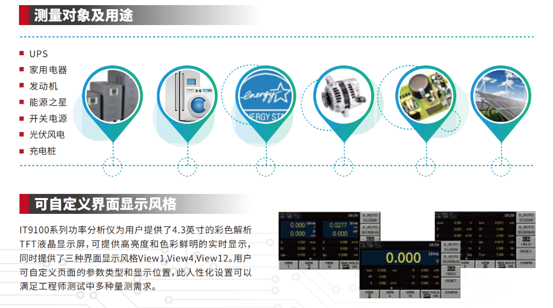 IT9100 系列功率分析儀提供1000 Vrms和50 Arms的**輸入,以及100 kHZ的測量帶寬,可以方便地進行電壓、電流、功率、頻率、諧波等參數的量測。標配有USB、RS232和以太網通信接口,您可以通過這些接口實現(xiàn)對IT9100功率分析儀的遠程控制,同時您還可以利用USB外圍設備接口,直接將量測參數保存到外部儲存介質中。IT9100功率分析儀具有0.1%的電壓、電流精度,同時還具有豐富的波形顯示功能、積分功能。廣泛應用于電機,家用電器,UPS等測試領域。